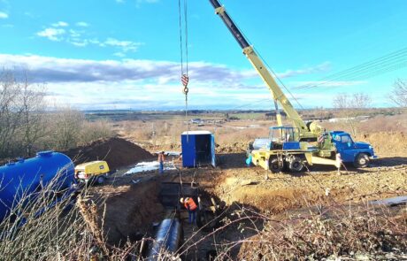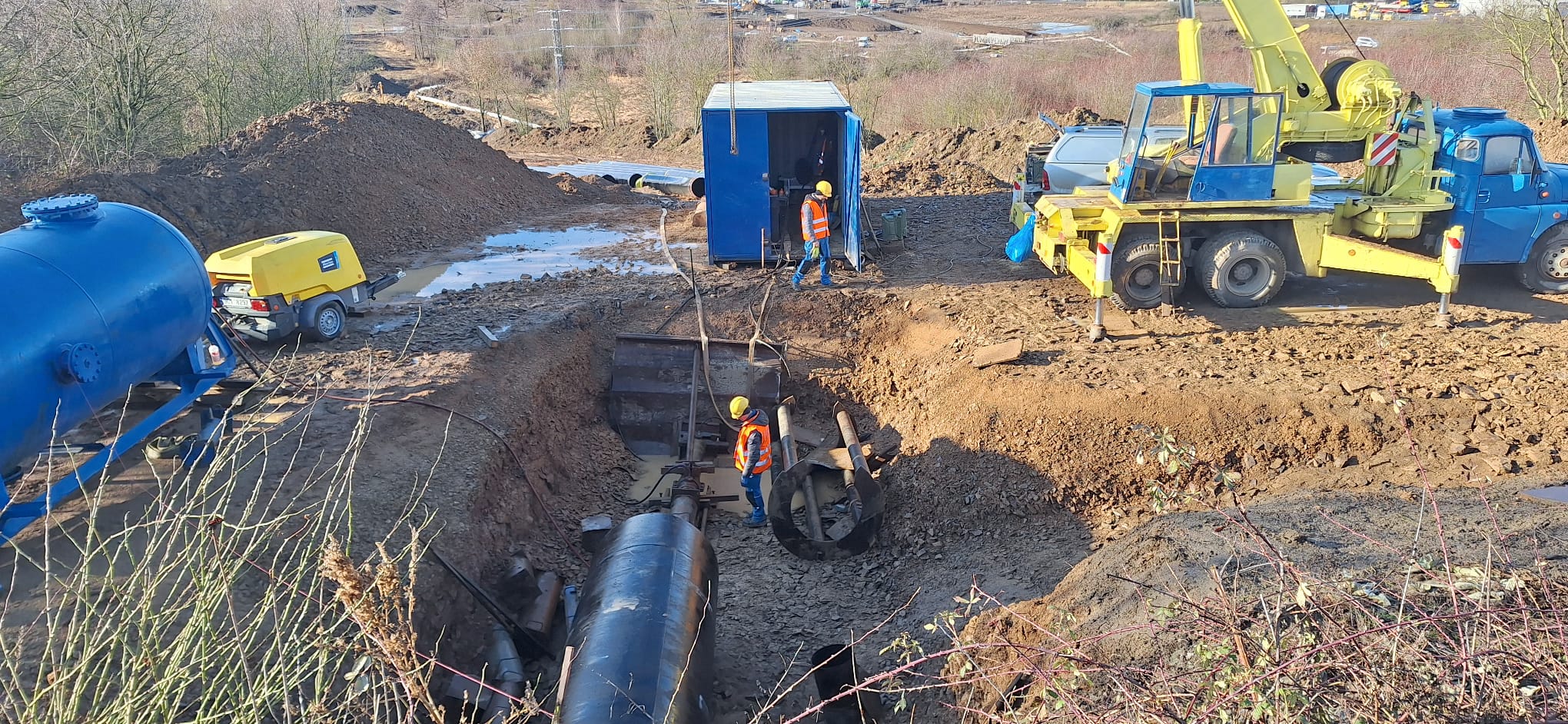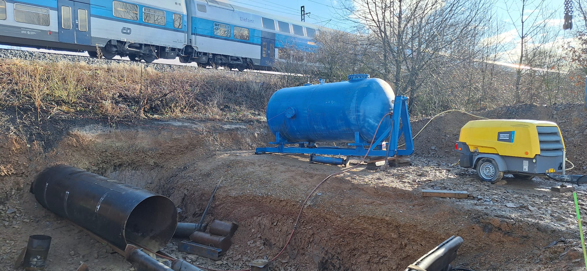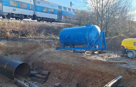 V rámci této stavby byl realizován 24m protlak chráničky OC DN 1200 pod železniční tratí. Protlak byl prováděn jako ruční s uvažovaným použitím trhacích prací, které ale z důvodu zastižení příznivých geologických podmínek nebyly využity. Dále byl realizován 28m protlak chráničky OC DN 900 pod silnicí, který byl prováděn šnekovým vrtáním.